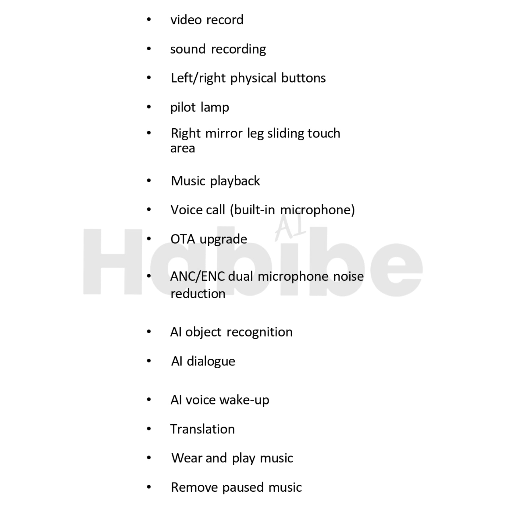 The Habibe AI 1 are premium AI glasses including the following features